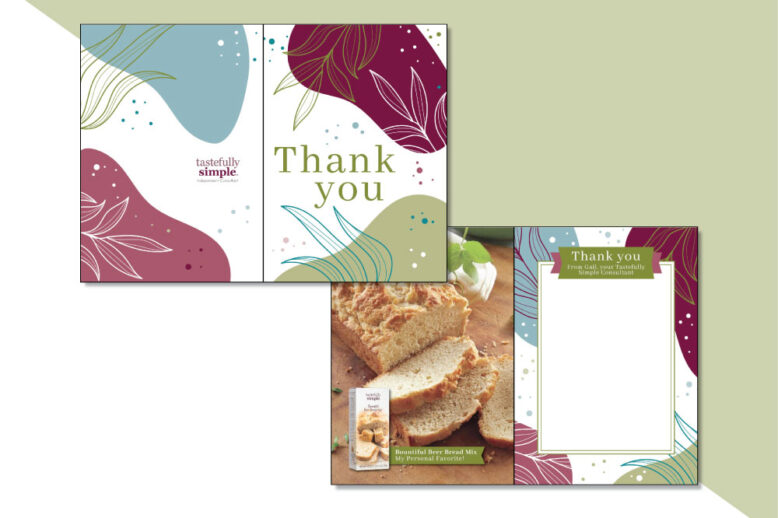 Gail Jusiewicz at Tastefully SimpleGraphic Design For this direct sales associate we created a branded greeting card which she would customize individually and send out to her customers. This greeting card could be used for any occasion or holiday and it pairs with her parent company’s branding while still being tailored specifically to her was…